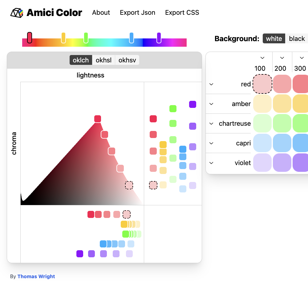 The tailwind color palette modified to have equal hue as determined by the oklab color space.