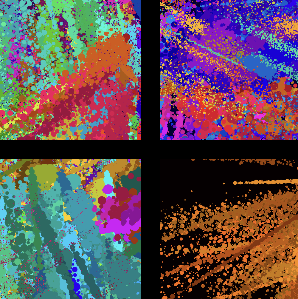 A program which generates unique paint splatter-like images. It might take a second because there are millions of dots per images.